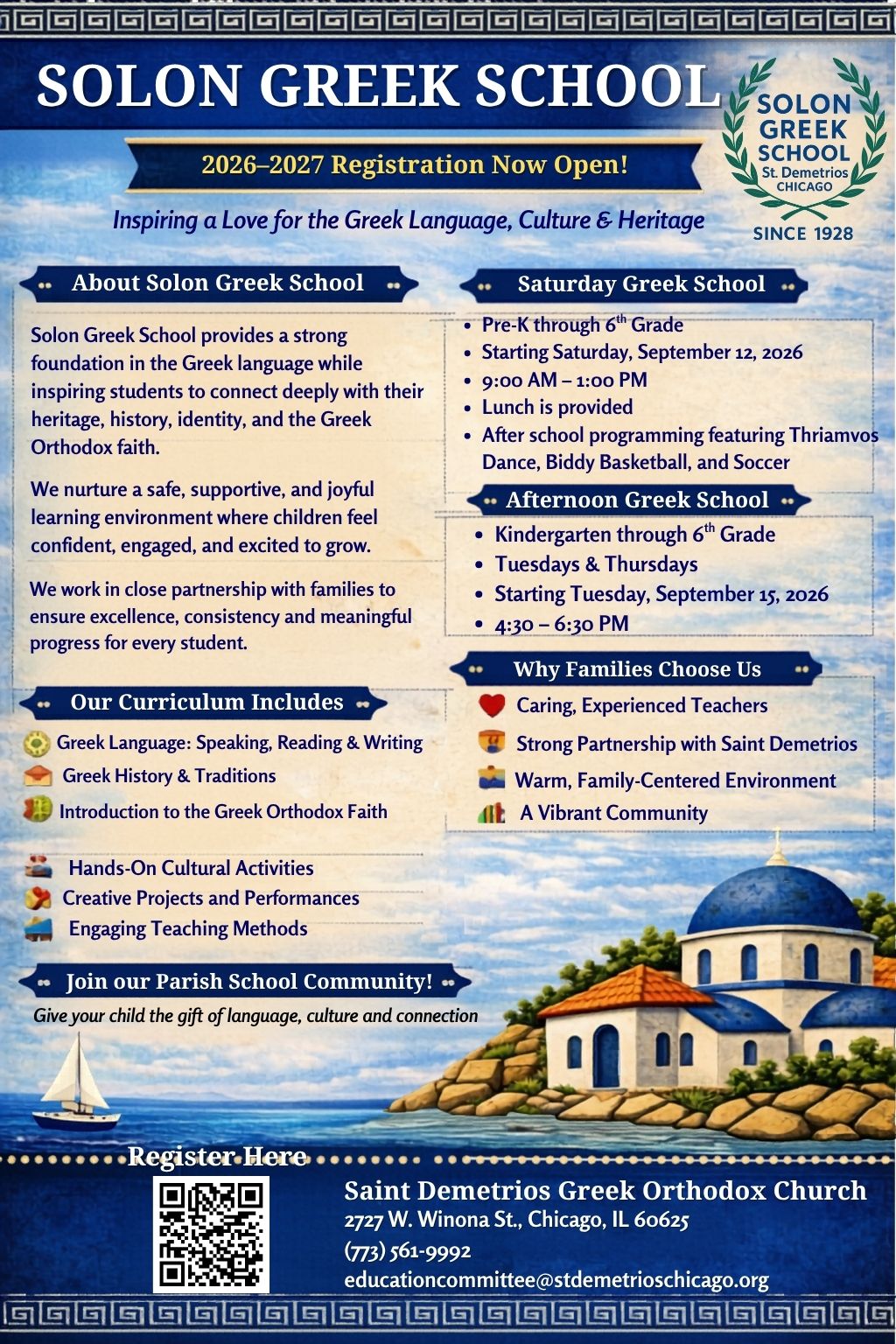 Solon Greek School – 9:00 a.m.–1:00 p.m.